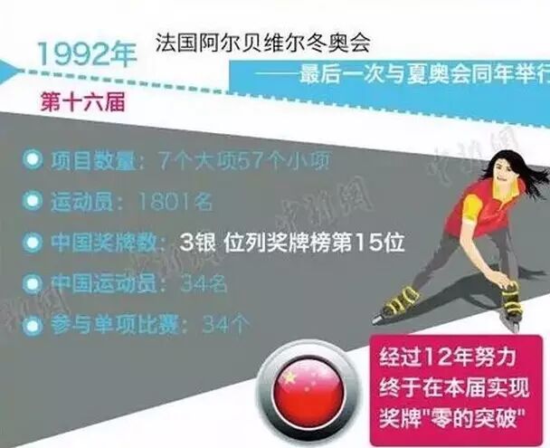3:1992年第16屆冬奧會:中國實現冬奧會獎牌「零的突破」